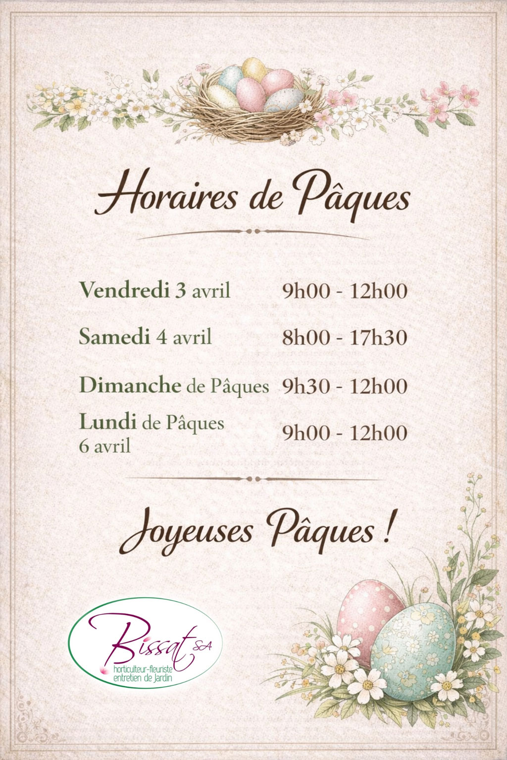 2024-2026 © Bissat SA - Fleuriste et horticulteur à Vich – Webdesign iMedia Solutions